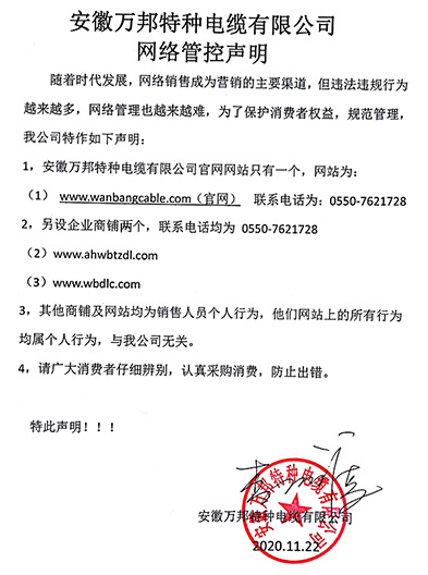 鄭重聲明:安徽萬邦特種電纜有限公司官方網站為:www_wanbangcable_com.dongqingshu.com,除此之外無任何子網站或合作網站,其余均為假冒偽劣。電話:0550-7621728 13485756353 地 址:安徽省天長市滁州高新技術產業開發區經四路29號